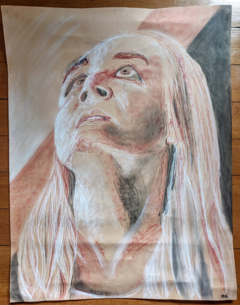 Black and white charcoal. Always trying to improve at portraits and appreciate any advice or suggestions you might have.